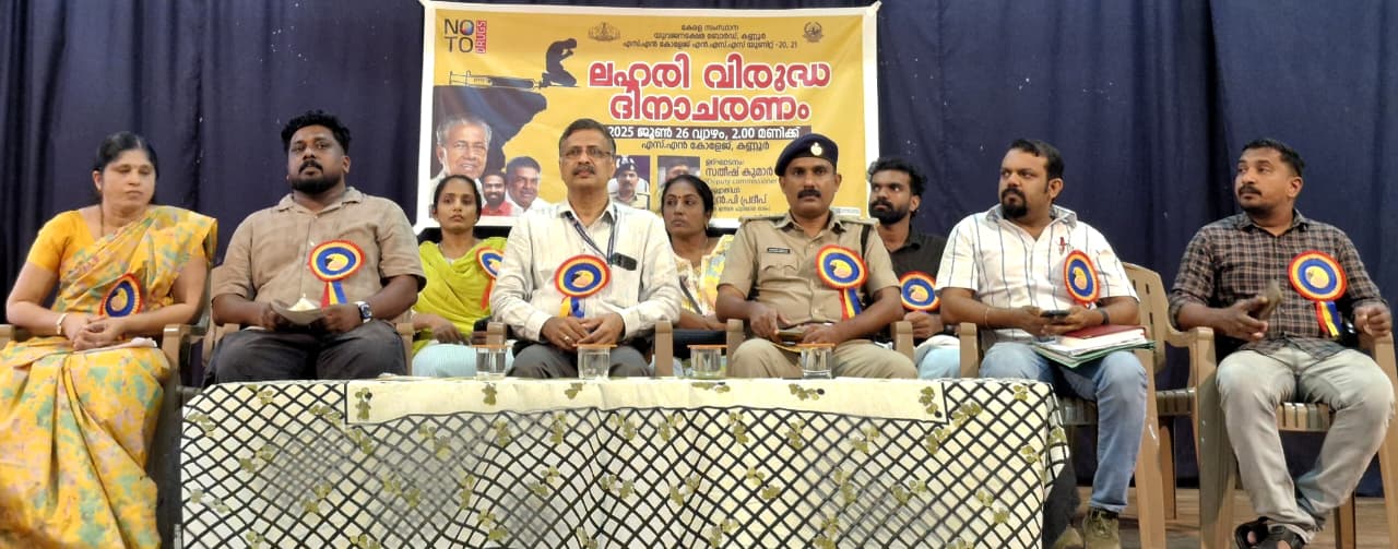 On June 26, 2025, Sree Narayana College, Kannur observed Anti-Drug Day in collaboration with the Kerala State Youth Welfare Board and NSS Units 20 and 21 under the theme “NO TO DRUGS.” Principal Dr. K.P. Prashanth, who presided over the function, highlighted the vital role of educational institutions in building a drug-free society. Excise Deputy Commissioner Mr. Satheesh Kumar P.K. inaugurated the event, and former Indian footballer Mr. N.P. Pradeep served as the chief guest. The programme featured an anti-drug pledge, awareness messages, and active student participation, reinforcing the importance of social responsibility and collective action against drug abuse.